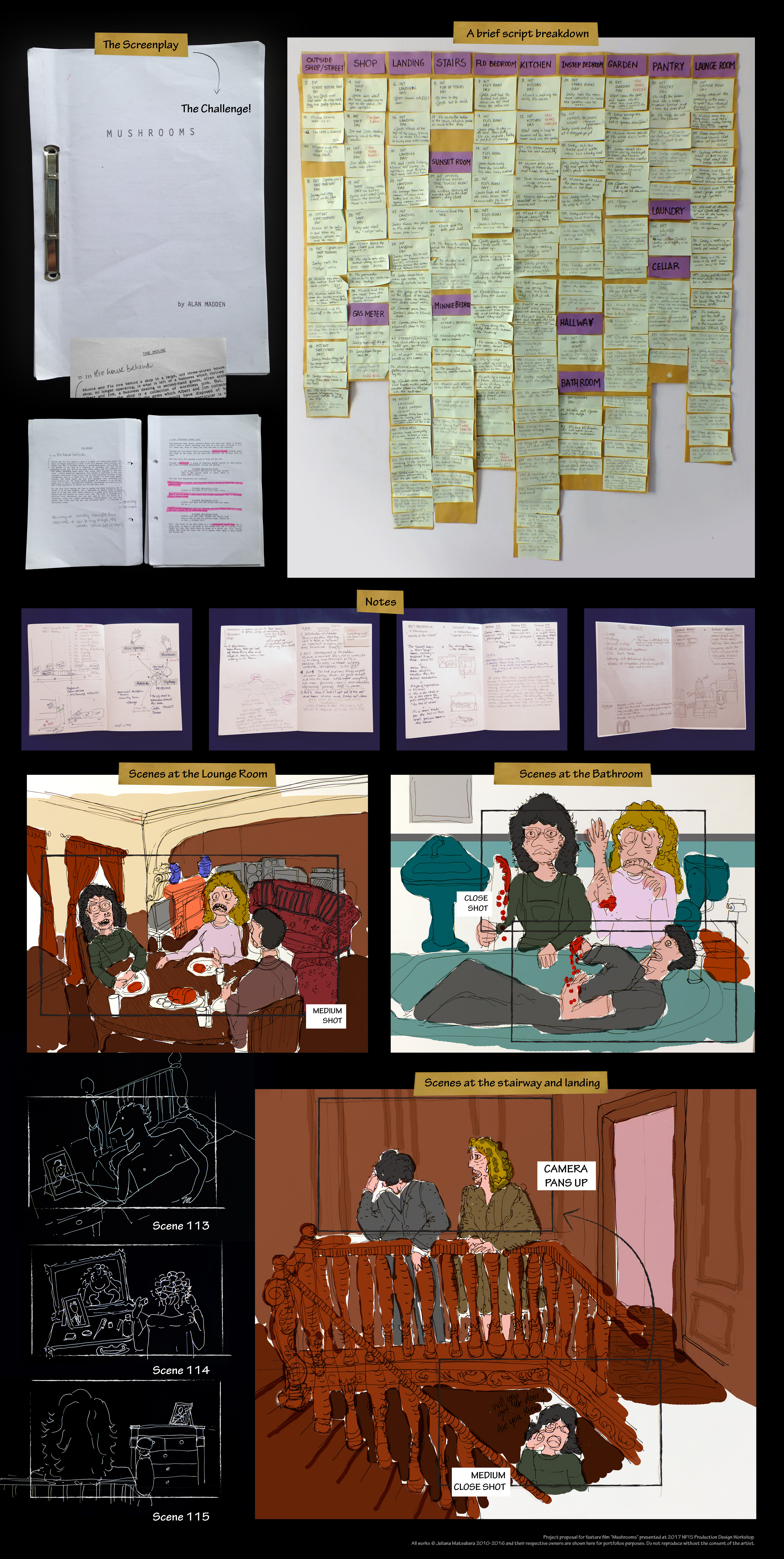 The Feature Film Challenge: design the house of the script "Mushrooms", the story of Minnie and Flo, who live in a Victorian Terraced House in Australia.